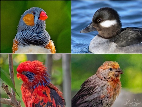 Auriculars: Male Zebra Finch (top-left) Female Bufflehead Duck (top-right) Blue-Streaked Lory (bottom-left) Allen’s Hummingbird (bottom-right)