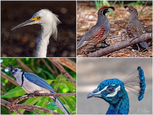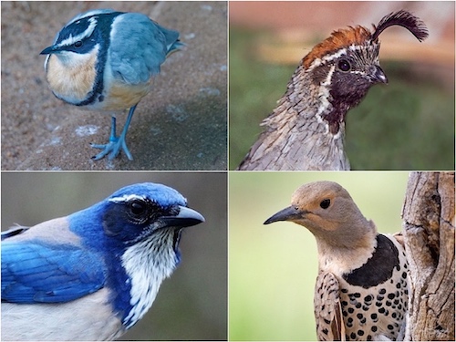 Bib: Egyptian Plover (top-left) Male Gambel’s Quail (top-right) California Scrub Jay (bottom-left) Female Northern Flicker (bottom-right)