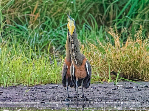 Billing between Bare-Throated Tiger Heron (Tigrisoma mexicanum)