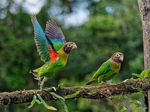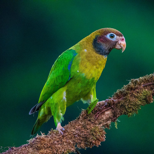 Brown-Hooded Parrot Red Auriculars (Pyrilia haematotis). Laguna del Lagarto Lodge, Costa Rica