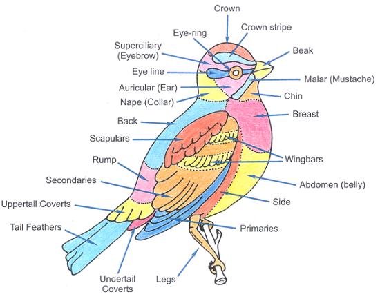 This diagram from Duncroft is a great infographic. The mosaic of colors and structures of the average bird can help you find the name and subspecies “dirt” on virtually any bird. By employing these terms, we can refine our search to identify just about any bird, assuming we have a database with descriptions of the birds. The comparison of human anatomy, emotions and characteristics is both familiar and time-honored dating at least as far back as the ancient Egyptians. Anthropomorphic comparisons are comforting, familiar and accurate in many instances. When corresponding anatomy is unclear or inaccurate, clothing analogies can sometimes provide more clarity.
