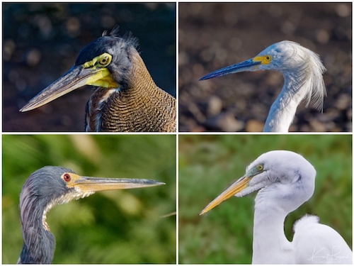 Lores: Bare-Throated Tiger Heron (top-left) Little Egret (top-right) Great Egret (bottom right)