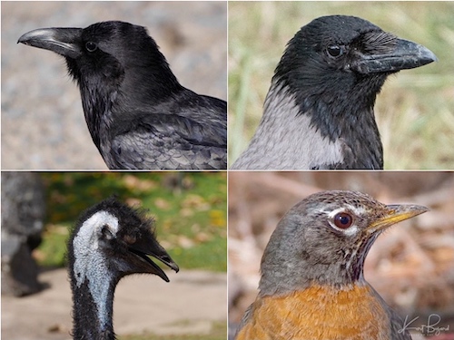 Rictal Bristles: Northern Raven (top-left) Hooded Crow (top-right) Emu (bottom-left) American Robin (bottom-right)