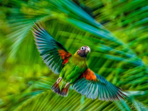 Spanning from wing to wing, underparts denote a bird’s underside. The “armpit” of a bird, often host covert feathers called axillaries. Other names include, axillary feathers and lower humeral coverts. A bird’s wingpit is the equivalent to the human armpit, the area close to the body on the interior of the underside of the wing. This area can show distinct colors or markings vital for bird identification like the red feathers in the axillaries of the Brown-Hooded Parrot. Look for streaks, barring, or color patches on any in-flight bird you’re trying to identify. Often, I include photography of the wings spread which are not nearly as good as a sitting bird but notice how different the colors are when the wings are spread. The names are the same, primaries, secondaries and coverts but note how the color of the underside of the wings is quite different than the top.