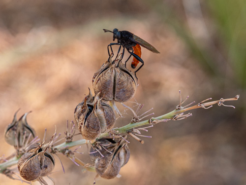Life Cycle: Males have been observed perching on shrubs, waiting to chase passing females, and have even been known to chase passing scoliid wasps. These flies are often found in areas where nectar-producing flowers, such as milkweed, are blooming, as male Mydas flies may gather there to await females for mating.