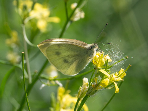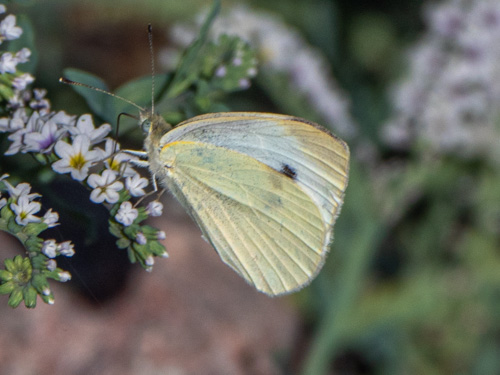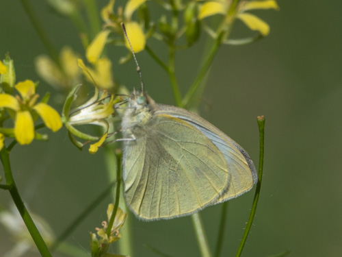 In appearance it looks like a smaller version of the large white (Pieris brassicae). The upperside is creamy white with black tips on the forewings. Females also have two black spots in the center of the forewings. Its underwings are yellowish with black speckles. It is sometimes mistaken for a moth due to its plain appearance.