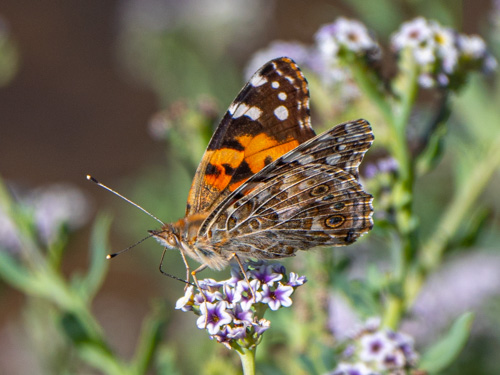 Painted Lady butterflies undertake one of the world's longest continuous migrations, covering thousands of miles over multiple generations to reach their destinations, like the Sahel Desert and the Arctic Circle. They fly at high altitudes, up to 22,000 feet, and can reach speeds of 30 mph while riding favorable winds. Their flight is an "irruptive" migration, meaning large numbers can appear in surprising locations, often driven by environmental factors. Sometimes, due to wet conditions in desert areas like the US-Mexico border, there can be a massive "butterfly boom," leading to large numbers migrating north into areas like Southern California and British Columbia.