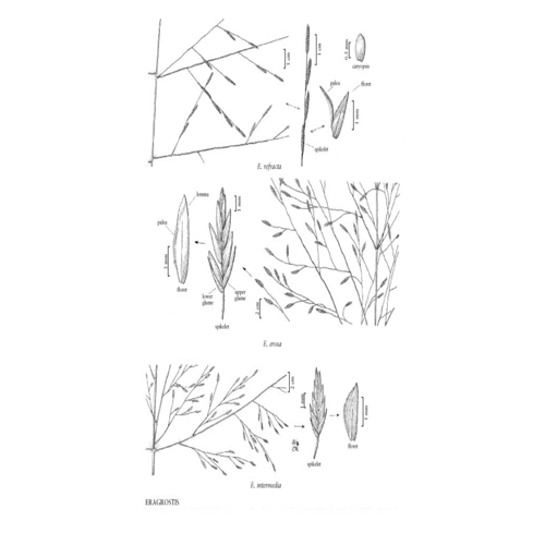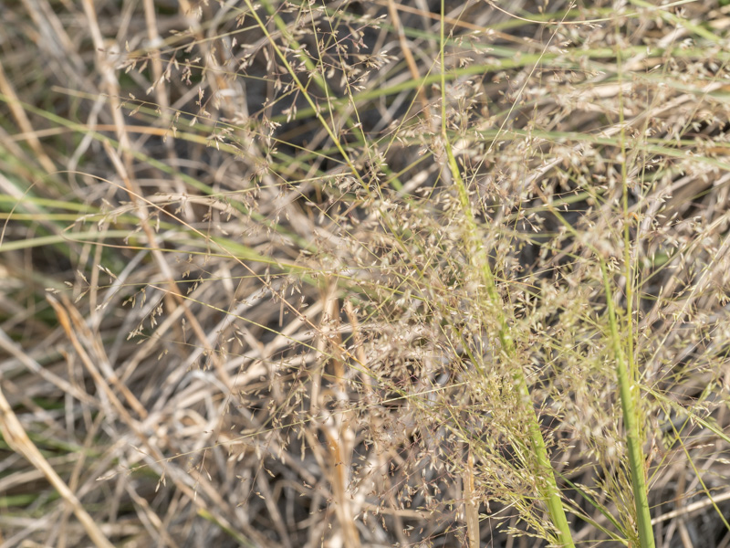 This grass grows in tufts up to 90 centimeters tall,[1] sometimes exceeding one meter. The leaves are up to 25 centimeters long. The inflorescence is a panicle with a pyramidal[1] or ovate shape. The spikelets have up to 11 flowers each. The plant reproduces by seed or by sprouting from buds at the stem bases.