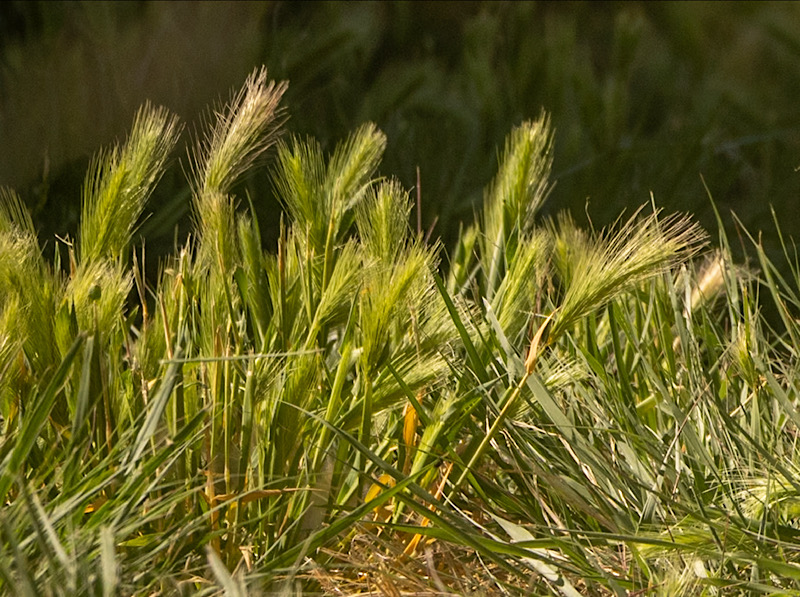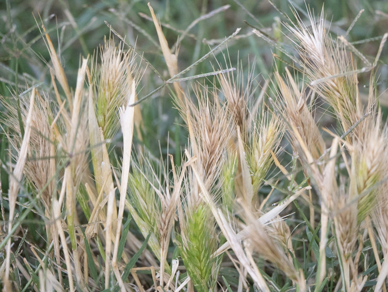 Hordeum murinum complex is the most widespread and common of all Hordeum species. The center of distribution of H. murinum is in the Mediterranean area, Central Europe, Western Asia, and North Africa. In some regions, it is considered an invasive weed that can outcompete native plants. It is a low-growing grass with a rectangular flower head that has a bearded or spiky appearance due to long awns. It can grow to about 30-50 cm in height, and its unbranched spikes can reach 10 cm long. It produces small, dry seeds and its leaves can be 8 millimetres (5⁄16 in) wide with short, blunt ligules. It is an annual species whose seeds germinate and develop in the spring.