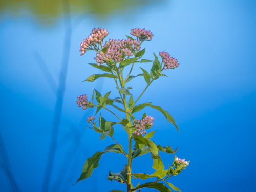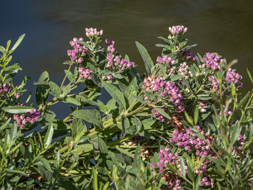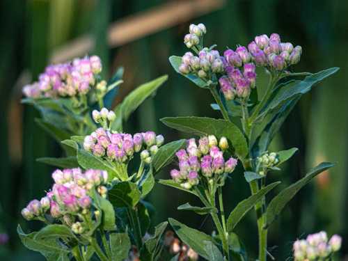 It is a native, aromatic plant found in moist, often saline, habitats like salt marshes and stream beds. It is a short-lived perennial or annual herb that grows up to 4 feet tall and produces clusters of pinkish-purple flowers from summer to fall. The plant is known for its strong scent, which makes it deer-resistant, and its flowers attract bees and butterflies.